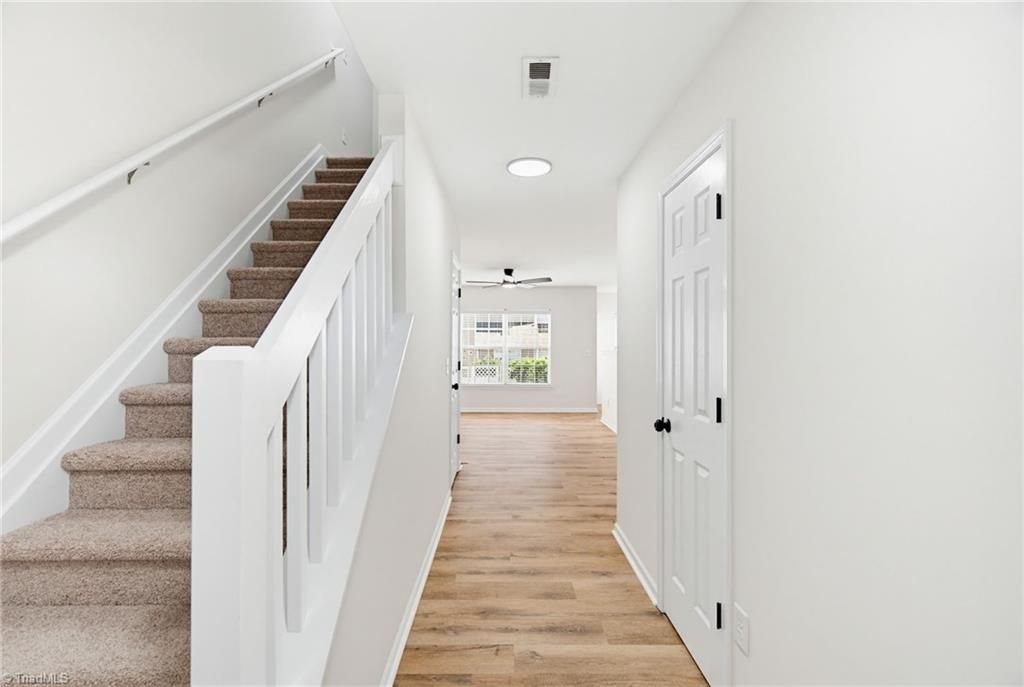Move-in ready townhome with garage in NW Greensboro, just minutes from PTI Airport and major highways. Fresh paint and new wide plank flooring throughout the main level give the home an updated feel. Open floor plan features a kitchen with granite countertops, new stainless steel appliances, and seamless flow into the living room. Upstairs offers two generously sized bedrooms, each with a private bath featuring large vanities and quartz countertops. New lighting throughout. One-car garage plus driveway parking. HOA includes community pool and covers exterior maintenance. Refrigerator to remain. NW Guilford schools and just blocks from Cornerstone Charter! Home warranty included. Agent is owner.