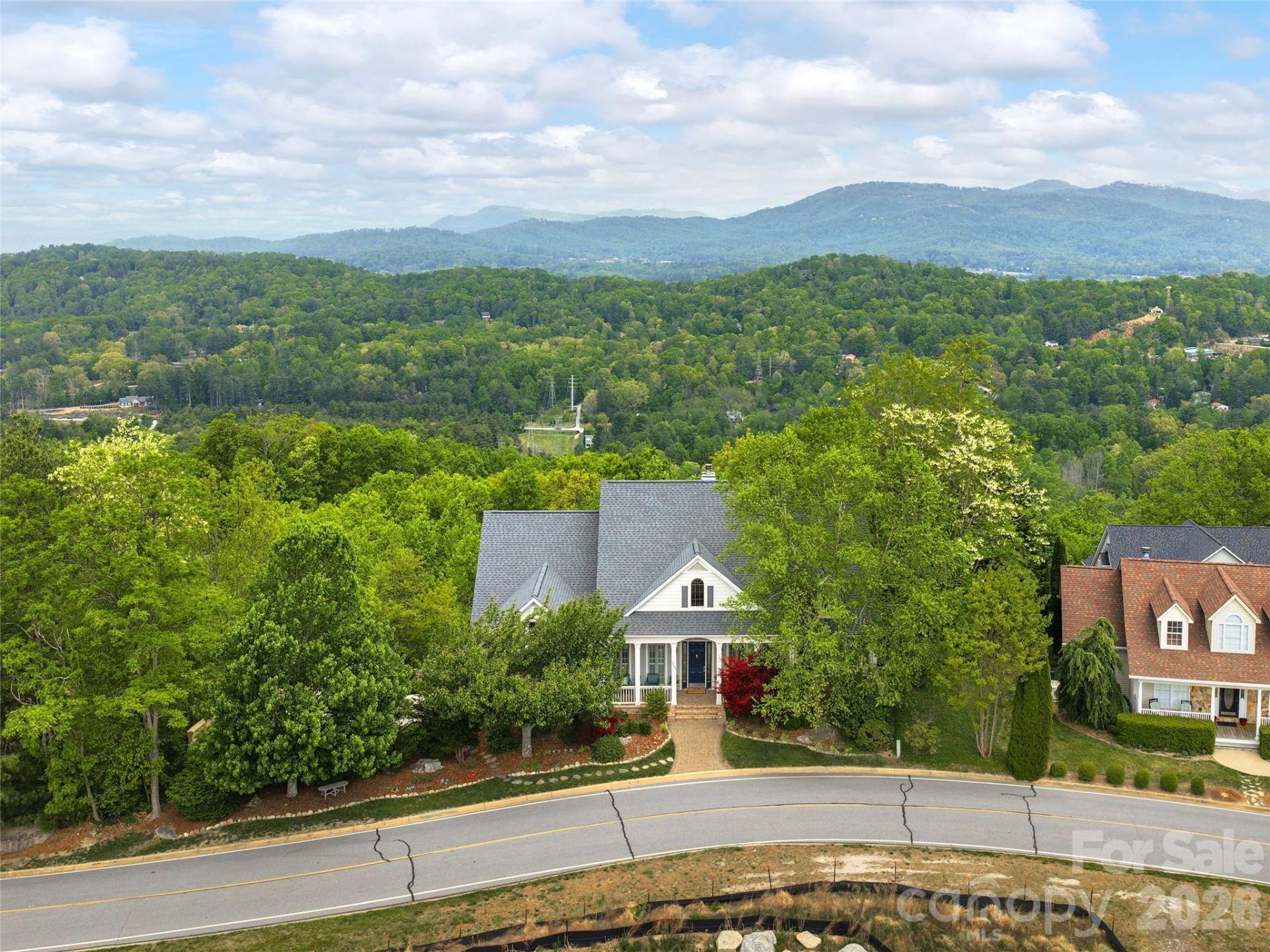 Enjoy year-round mountain views and luxurious comfort in this elegant mountain retreat located in the prestigious Carriage Park Gated Community. Featuring spacious interiors, soaring tray ceilings, elegant crown molding, custom cabinetry, stunning wood column accents, and premium 3 inch oak hardwood floors, this residence exemplifies quality and sophistication. Indulge your culinary passions in the gourmet kitchen, ideal for both daily meals and entertaining guests. Relax in the grand great room with panoramic mountain vistas and abundant natural light, or retreat to the luxurious primary suite with a spa-inspired bath, including a frameless glass walk-in shower and a Jacuzzi soaking tub. Private offices and guest spaces provide flexibility for your lifestyle, while the lower level offers a complete in-law suite with its own patio entrance. Exceptional home systems include an elevator for convenience, zoned HVAC with humidity control, circulating on-demand hot water, whole-house water filtration, and an automatic generator for peace of mind. Carriage Park residents enjoy an active lifestyle with access to a social clubhouse, year-round indoor pool, tennis and pickleball courts. Located just 3 miles from downtown Hendersonville, you're close to top restaurants, shopping, entertainment, and excellent medical facilities. Don't miss the opportunity to experience this extraordinary mountainside sanctuary designed by Stephen Fuller, one of the most prominent residential designers in the United States. View the video virtual tour for a closer look and schedule your private tour today!