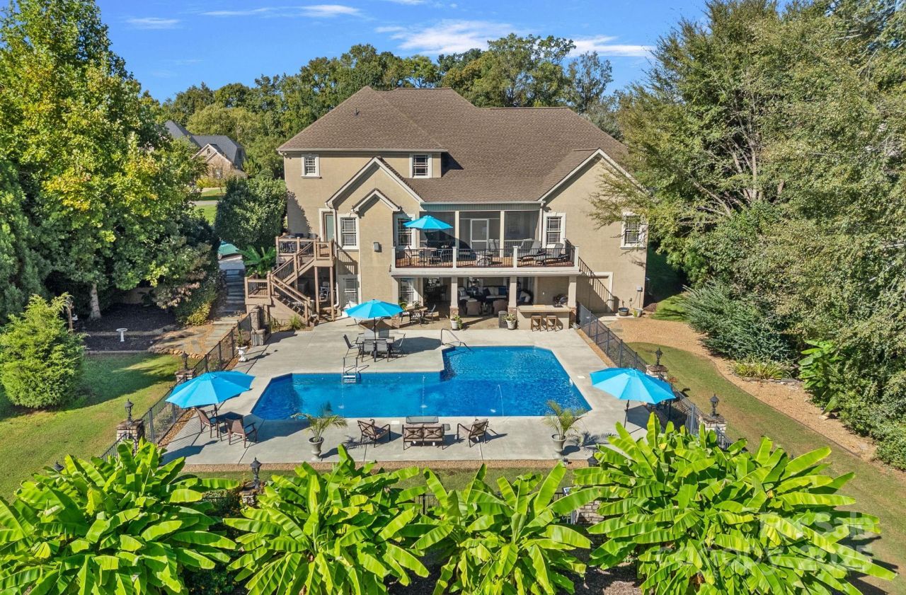 Stunning custom executive home with a pool in the desirable Walden Ridge neighborhood priced below recent appraisal. Features a grand foyer, an office with bay window and French doors, a formal dining room, and a spacious family room with a stone fireplace centerpiece. The kitchen, with coffered ceilings, includes two islands, ample cabinet and prep space, and a large pantry. Main level also offers a keeping room, laundry room, breakfast nook, and access to a screened porch and back deck leading to the pool. The primary suite on the main floor boasts French doors to the porch, a double vanity, whirlpool tub, dual-head shower, walk-in closet, and linen closet. Upstairs are three large bedrooms with walk-in closets, a Jack-and-Jill bathroom, linen closets, and a bonus room with a bar, sink, mini fridge, and custom surround sound system. The finished basement mirrors the main floor, including a great room, breakfast area, keeping room, kitchen, large pantry, second laundry room, full bath, additional rooms, and storage. The backyard is an entertainer's dream with a covered patio, fireplace, custom grill island, and a massive pool for everyone to enjoy. RV electric hook up ready for your guests. Four miles from downtown Mooresville. Priced below current appraisal! 11 minutes from downtown Mooresville, 17 minutes from Davidson, 20 minutes from Lowes Corporate, 19 minutes from Lake Norman Hospital, 3 minutes from new Publix