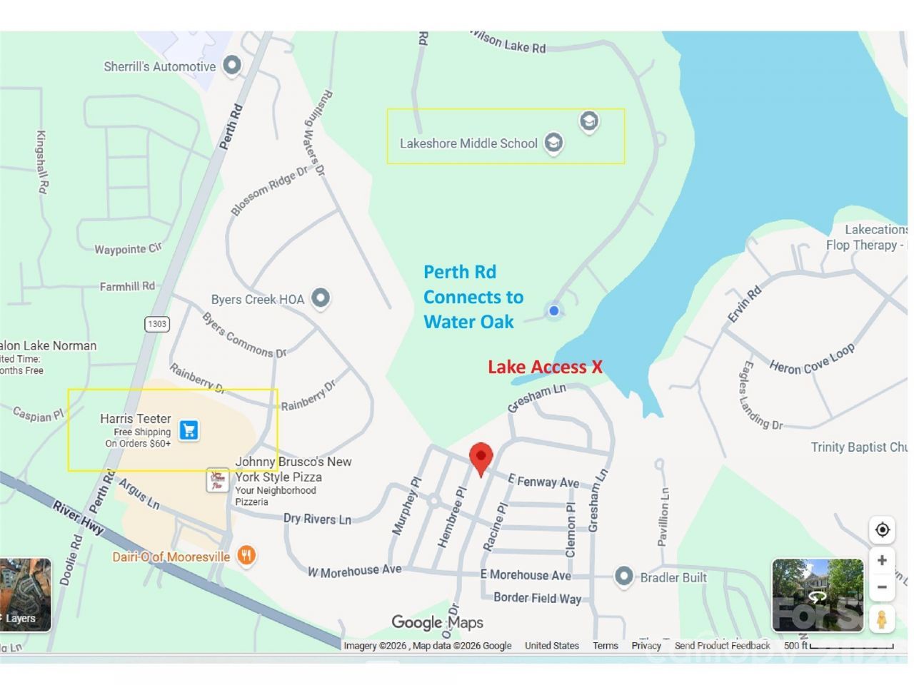 Charming Charleston-style home in the highly desirable Water Oak community! Enjoy exceptional walkability with sidewalks connecting directly to The Village at Byers Creek, offering convenient access to shopping, dining, and everyday essentials.This beautiful 4-bedroom Saussy Burbank home sits on a private corner lot and features a welcoming rocking chair front porch and an oversized rear deck?perfect for relaxing or entertaining. Expansive windows fill the home with natural light and showcase the stunning dark hardwood floors throughout?no carpet anywhere.The upgraded kitchen features extensive molding and wainscoting, granite countertops, a Bertazzoni gas range, 42 custom cream rubbed cabinets with soft-close drawers, and a sunny breakfast area that flows seamlessly into the spacious family room with a cozy gas fireplace.Upstairs, the primary suite offers vaulted ceilings, a renovated bathroom, and a walk-in closet. Three additional bedrooms share an updated full bathroom.Water Oak offers fantastic community amenities including a pool, kiddie pool, clubhouse, playground, sidewalks, and a NEW dog park. Residents also enjoy a community Lake Norman access area with bench seating?perfect for launching a paddleboard or kayak. The neighborhood pond just around the corner on Gresham Lane is a favorite spot for fishing.Conveniently located near highly rated schools, I-77, shopping, dining, and Lake Norman recreation.The garage is workshop-ready, and storage is abundant with attic, crawl space, and garage space.This Charleston-inspired Water Oak gem offers charm, walkability, and community amenities all in one?a home you won't want to miss!