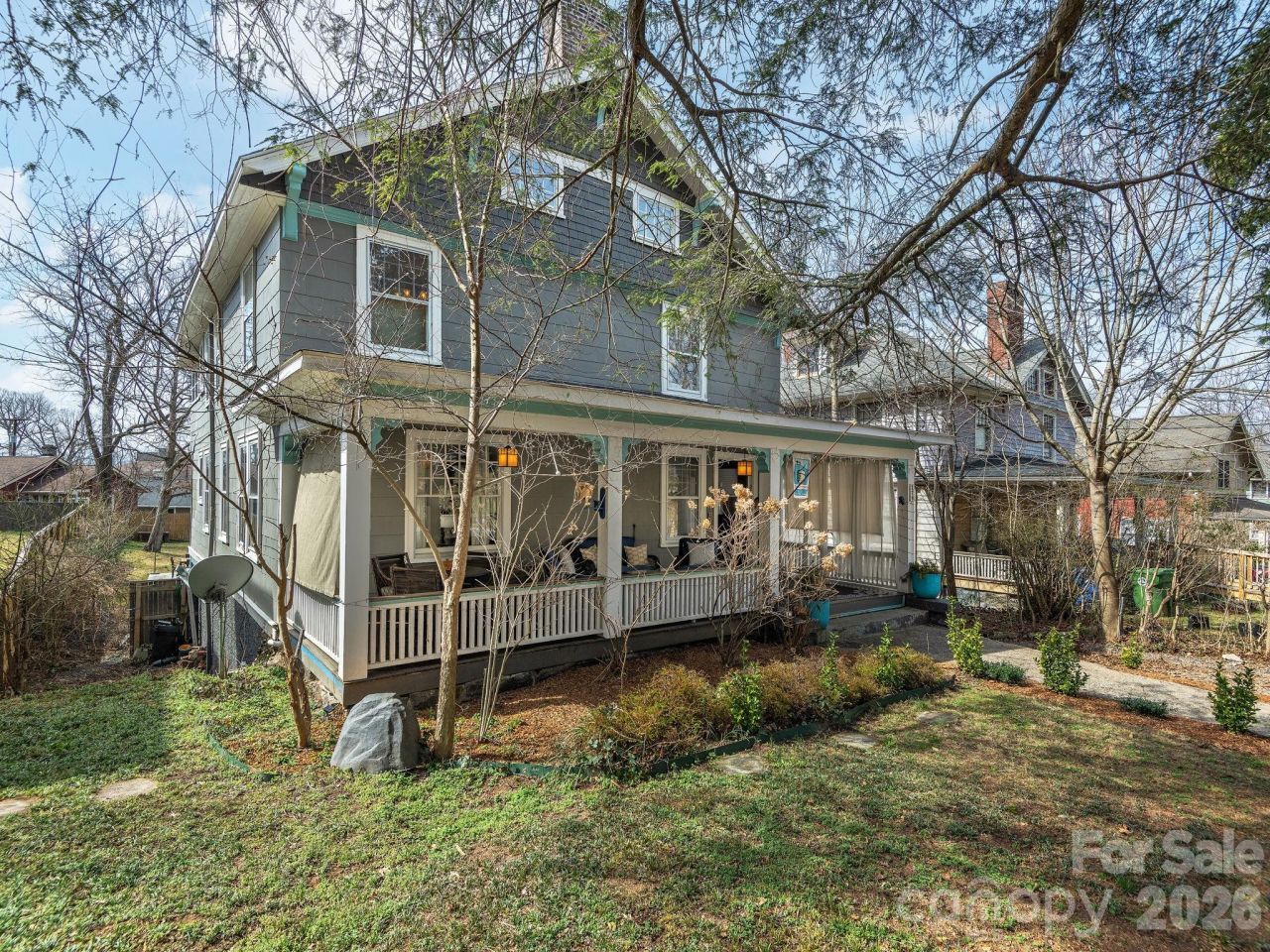Own a piece of Asheville's history! This beautifully renovated Montford showpiece is in the heart of downtown and one minute's walk from renowned restaurants Tall John and Nine Mile. Easy stroll to Montford Park for tennis or Shakespeare in the Park; under one mile to downtown Asheville. Enjoy the welcoming front porch and historic charm of the spacious foyer. All the rooms are generously sized and there are four renovated bathrooms, all in the classic designer style of the era. Great for entertaining, especially with the updated chef's-style kitchen, two covered porches, a huge backyard with a firepit, and a place for dining al fresco on the concrete patio. The eat-in kitchen has abundant maple cabinetry and lovely quartz countertops. Second level has three very large bedrooms including the primary suite with its walk-in closet and large primary bath. The gorgeous guest/hall bathroom has marble floors and a huge soaking tub. Enjoy the gorgeous sunset view from the sunroom?perfect as an office, art or yoga studio, or sleeping area. Third floor is an awesome hangout room and bedroom that's just right for an office or guest area. In addition to the amazing main levels, there is a 500+ SF super-sweet studio/bonus area (not contiguous) with a separate entrance. It has a spacious bathroom with new clawfoot tub. Must see this lovely home to appreciate its class and charm. Amazing Montford location!
