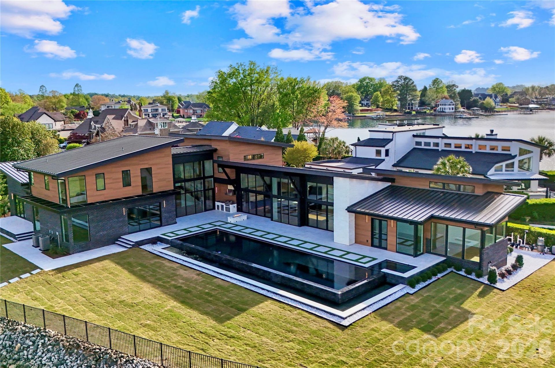 A fresh new look and officially complete! Take a look at the stunning new photos!Step into this Ultra-Luxury Build designed by Frazier Home Design & built by Grand Living Homes. Perfectly situated on Lake Norman in Cornelius, this 5 bed, 6 bath home combines refined design, modern comfort, and panoramic waterfront views on the lake. No detail was spared from steel beams, custom cabinetry, waterfall countertops, high-end appliances, sauna, gym, and floor-to-ceiling windows framing water views from nearly every room! A brand-new dock is underway, perfect for sunset cruises, fishing, or launching kayaks. The outdoor living is unmatched, with an infinity-edge pool overlooking the water and space designed for everything from relaxing mornings by the lake to elegant poolside dinners. It's a true retreat yet just minutes from downtown Cornelius, top-tier restaurants, the Peninsula Club, the marina, and more. This is a rare offering in one of Lake Normans coveted locations! Schedule your private tour today and discover lakefront living at its finest!