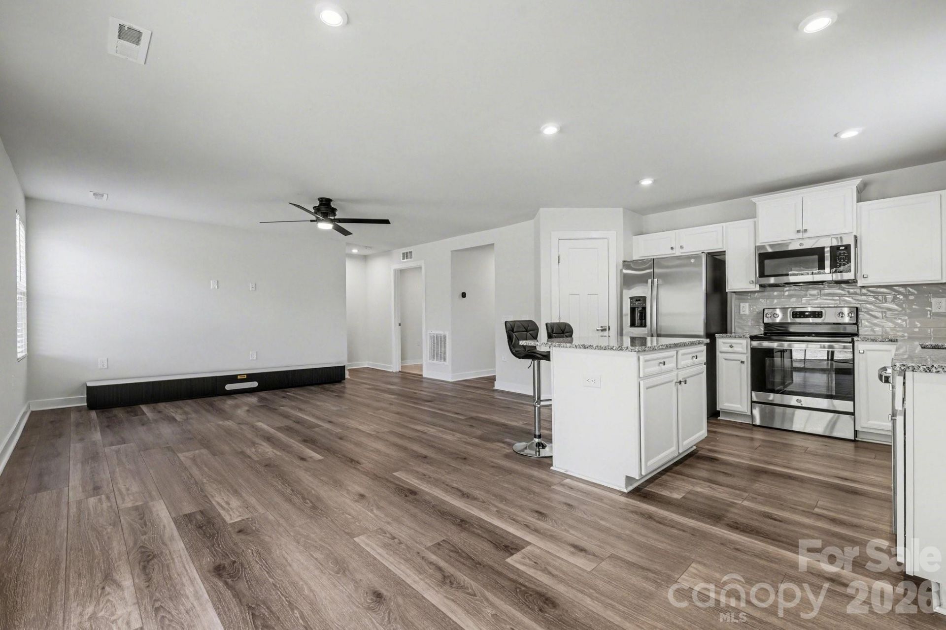 This popular ranch home features a spacious open floorpan, granite countertops and white cabinets. All appliances included: GE stainless side by side refrigerator, smooth top electric range, under cabinet microwave with exterior vent, dishwasher, and top loading washer and dryer. The luxurious & roomy owner's suite includes plenty of space for a king bed, and boasts a large walk in closet. The spacious & open floor plan is perfect for entertaining! The home offers a covered porch overlooking a private, wooded backyard!