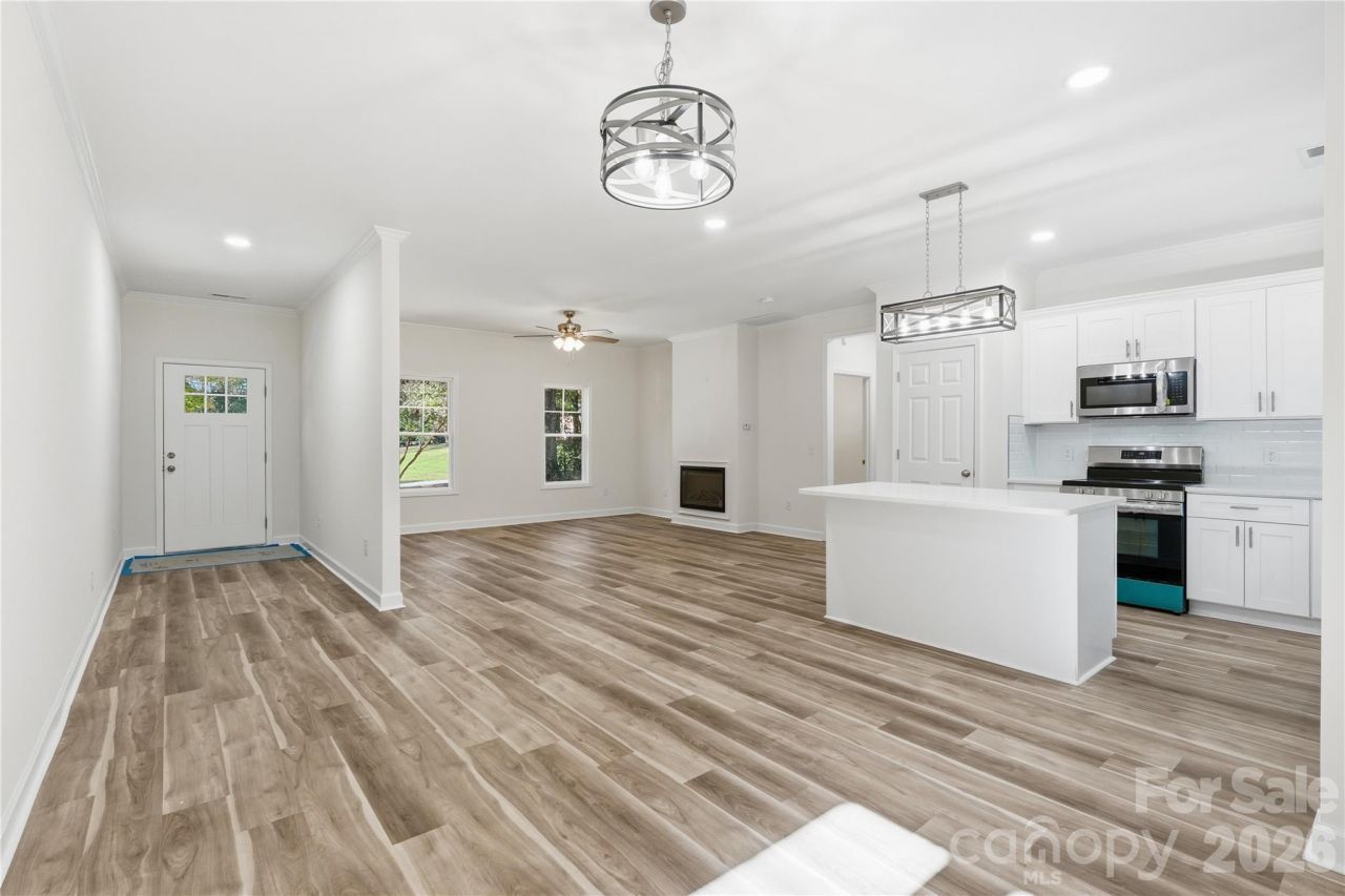 STUNNING 3 bedroom, 2 bathroom home nestled on near 1/2 acre lot. Built with precision and care, this home blends fresh design with classic details, making it the perfect balance of comfort style and function. The LVP flooring flows throughout the first floor and the open concept kitchen featuring quartz countertops, custom cabinets and soft close drawers and doors give that perfect touch of elegance and convenience. The craftsmanship shines in every corner from the crown molding to the tray ceiling in the primary bedroom...every detail speaks of quality. Both bathrooms are finished with gorgeous custom tile work with the primary bath designed as your own spa-like retreat. Outside you'll find black, sleek exterior windows that elevate the home's curb appeal, paired with spacious back deck, one car garage and plenty of yard space.