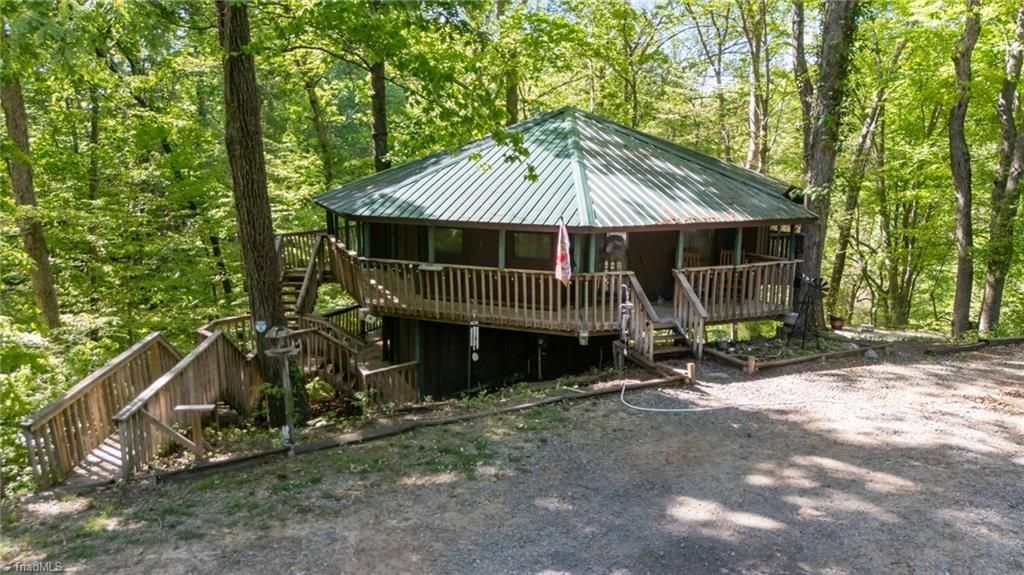 Showings Start Sunday! Nestled on over 8 acres, this post-&-beam home offers a private, cabin-inspired setting. The home features large windows that bring in natural light and show the surrounding trees, along with upper & lower wraparound-style decks that create a mountain-like feel. Both bedrooms have their own private entrance. Open living areas & exposed beam construction showcase the home???s Topsider design and unique character. Home is listed as a 2-bedroom with a 3-bedroom septic certificate on file. Since 2025, Per the seller, significant improvements including new plumbing, a New 24x36x12 garage, re-wired the barn with its own power meter, 220 RV outlet, & electric fencing for livestock. Kitchen updates include new countertops, added cabinetry, & sink. Exterior cooling unit installed in 2025. The home offers potential for a variety of uses including private retreat/guest accommodations. Whether you're dreaming of a getaway, hobby farm, or homestead, this property is rare!
