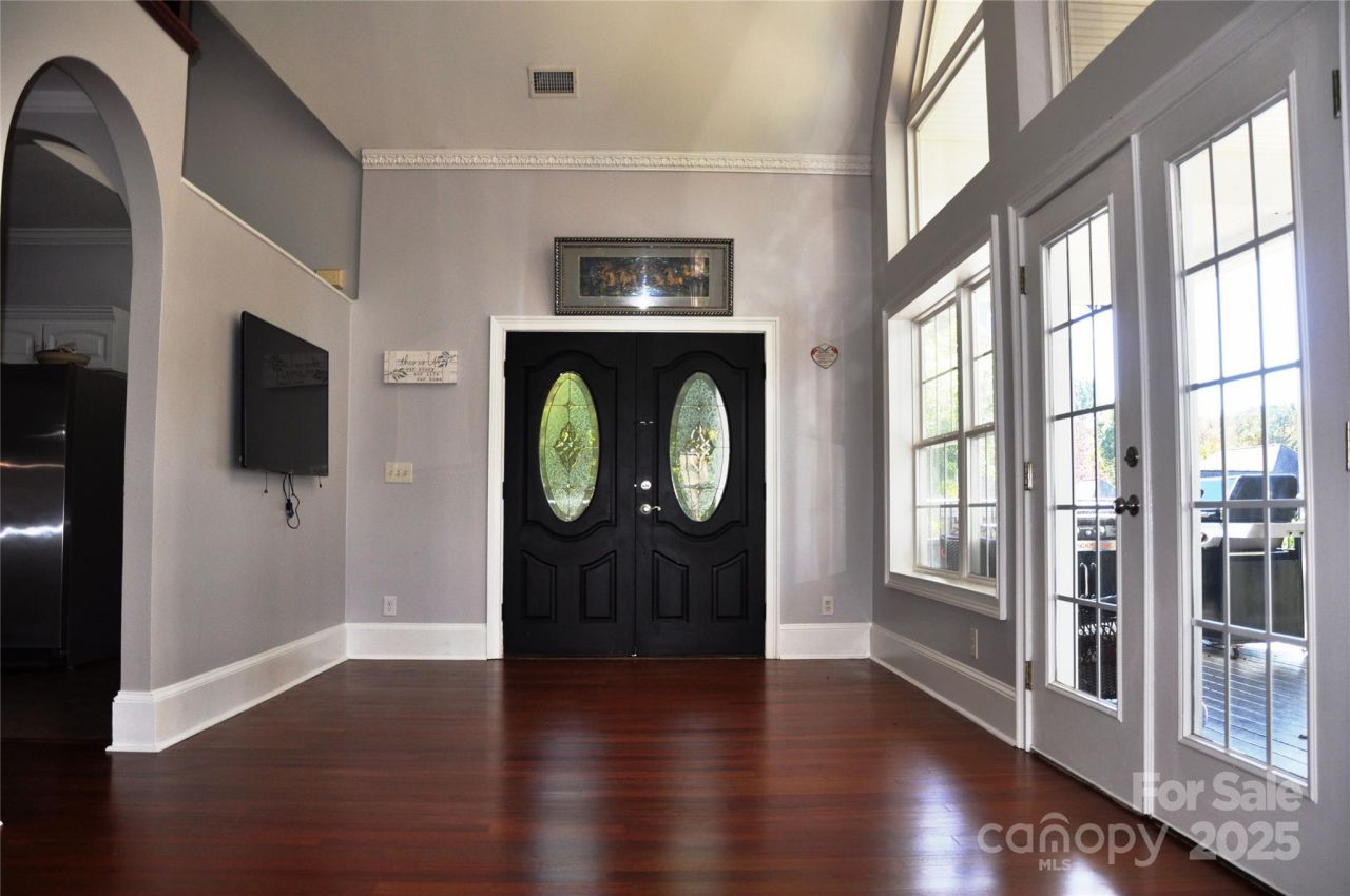 Great price improvement! This custom-built waterfront home on Lake Norman features four bedrooms and five bathrooms. The tri-level design offers primary living spaces on the main floor, with additional quarters in the walk-out basement. Loft with water views, a bonus room, and a separate office, all equipped with closets. The expansive L-shaped wrap-around covered patio and balconies provide an ideal setting to enjoy the lakeside breeze. Large, wooded lot, adorned with mature trees, ensures ample shade and privacy. Conveniently located adjacent to the community boat ramp and slips, the property is also near Sherrills Ford's shopping and dining areas. The main floor includes a spacious primary bedroom suite, while the basement level an in-law suite with a private, complete with kitchen, dining space, laundry, and two bathrooms. Additional highlights include elegant hardwood floors, tile accents, extra parking for a personal boat, and a lockable gate for enhanced security and privacy.