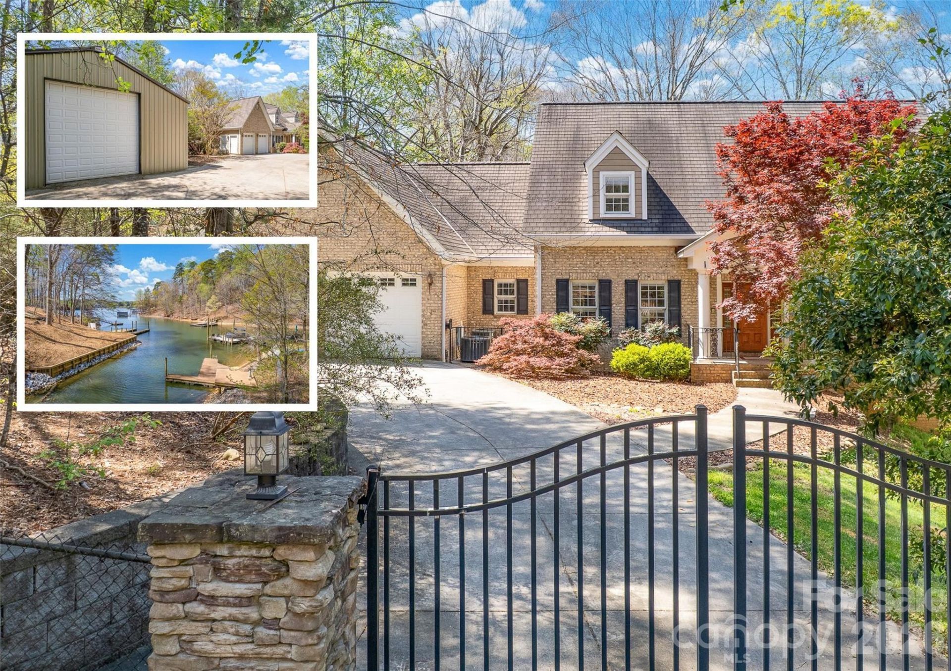 This custom built 2story home sits on a double 1.81 acre lot with water frontage and a dock on Lake Norman as well as with a 2,016 sqft detached shop that can hold your camper, your boat, your toys and your work items; Walk down the wooded path to the boat dock where the slip has been dredged and you can see out to the main channel; The dock is permitted with Duke's tag number 11419; Enjoy nature with the fenced, wooded lot which is visited by deer, fox, possum, raccoons and hawk; The 56' x 36' shop is steel insulated, heated by a propane heater, has 12 inch concrete foundation walls and concrete footers, is free span with no center posts, has 2-3' man doors and a 16' x 14' overhead door; The shop has housed a 42' class A motorhome and a 30' boat/trailer; The classically designed and lovingly maintained home has 4 levels, generous room sizes and more storage and future usability than you can imagine; Upon entry in to the home, you will see the refinished cherry wood floors with the Dining Room to the left and the Library with built-in cherry bookcases to the right; The Library could become an additional bedroom by adding an entry door or closing the wall; The gourmet Kitchen features Omega cherry cabinets, granite counters, stainless appliances, an island with electric and a bar, a double oven and a new microwave, stovetop and dishwasher; You'll appreciate the decorative carvings on the wood cabinets and the large, heated walk-in pantry; A Great Room French door leads to the massive composite deck facing the water; The Bonus Room has 2 walls of windows, a vaulted ceiling and gas fireplace with a heatolator and a carved wood surround; In back of the garage is a large sunroom with a ceramic tile floor and a butlers station with a sink and cabinets and a door to the rear deck; The Primary Bedroom is spacious and with a charming full bath with a Kohler cast iron tub, a stall shower and a double sink/vanity; The Primary Bedroom's walk-in closet has tons of shelf and rack space and a window looking to the water; Bedroom 2 upstairs has 2 closets and a full bath; The primary Laundry Room is on the 2nd floor and there is a secondary laundry hookup in the basement; The 1st lower level basement has a huge 65' span with a den area, a billiards and card table area and a butlers kitchen in addition to a full bathroom; Additional rooms on this level are a Bedroom, a utility room, a storage room by the stairs and a heated room with a sink off the stamped concrete patio; The den has a French door to the huge covered patio which has a hot tub for your relaxation; The Den part of the basement could become a great movie room or an additional bedroom as it is so big and with high ceilings; The lowest level is unfinished except for the half bath and has a massive amount of finishable area including a large possible den, movie room, exercise room, etc; Don't miss the underground storage with 89' of wall space; The attached garage has 2 oversized 9' doors and fits 4 nor