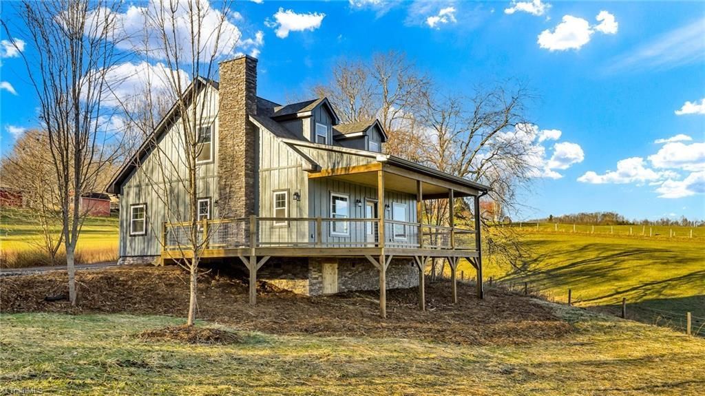 New Craftsman-style home just outside Jefferson city limits, offering privacy and tranquility. Exterior features classic board-and-batten siding, a stone foundation, and stylish chimney, accented by modern black window trim. Enjoy an open deck and a spacious covered back porch with serene views of Jefferson Landing. Inside, the bright floor plan includes luxury vinyl plank flooring and tongue-and-groove ceilings. Living room boasts a stunning stone fireplace with a pine mantle and access to the covered porch. Eat-in kitchen features maple cabinetry, granite countertops, stainless steel appliances, and a breakfast bar, along with a nearby walk-in laundry room and half bath with a granite vanity. Main-floor primary bedroom includes an en-suite bath with a walk-in tile shower, granite vanity, and spacious walk-in closet. Upstairs, two generous guest bedrooms share a full bath. Stylish black fixtures throughout complete this beautiful home, just minutes from the New River and Jefferson.