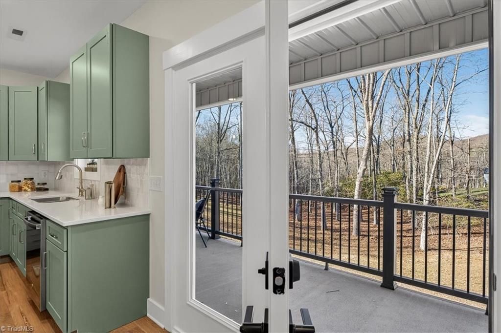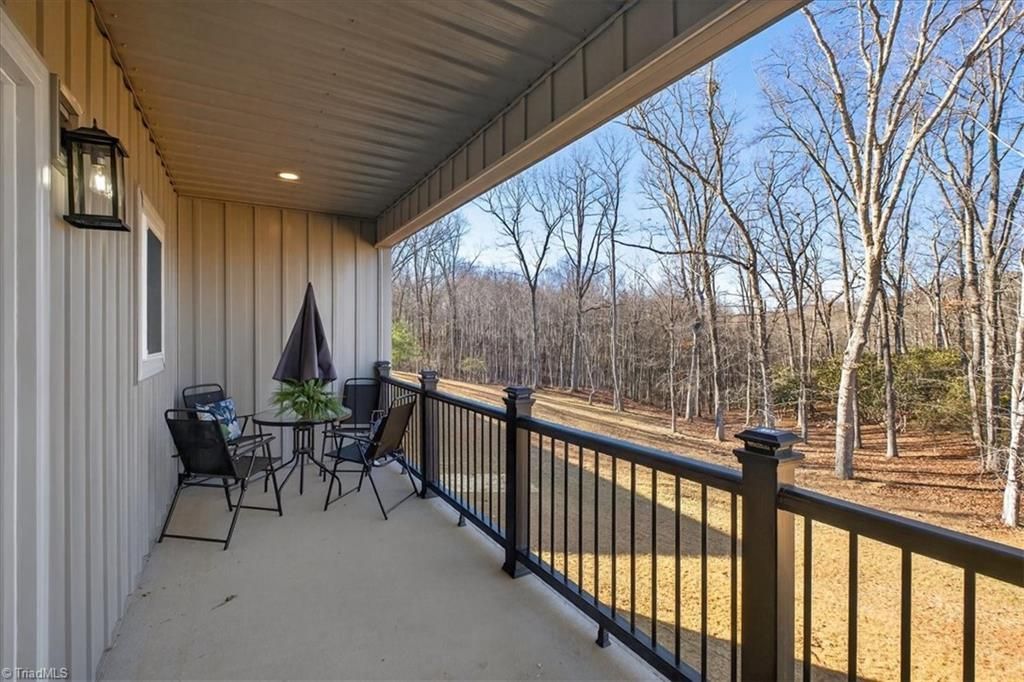 This brand-new construction in the Busic Ridge community offers a sophisticated living style within the town limits of Sparta, North Carolina. Situated on a generous lot with a spacious backyard, this three-bedroom, two-bathroom home is designed for buyers who prioritize quality and proximity to local amenities. The exterior is engineered for maximum durability and very low maintenance, utilizing the latest in home building technology with metal siding. A fully paved driveway leads to an oversized garage, providing ample space for vehicles and additional storage, while a high-end composite deck offers a permanent outdoor area that requires no staining or sealing. Inside, the home is defined by an open layout characterized by authentic hardwood floors and an abundance of natural light from large, well-placed windows. The kitchen is fully equipped with included appliances and serves as the functional center of the home.