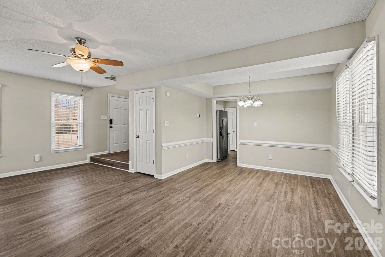 Three-bedroom, 2.5-bathroom move-in ready home in McAlpine Woods with no rear neighbors!This home features a bright, open-concept layout where the living room and kitchen connect seamlessly, perfect for entertaining. The kitchen has been updated with granite countertops and stainless-steel appliances.All bedrooms are located on the second floor for a clear separation of space. The primary suite offers a spacious retreat with a walk-in closet and an ensuite bathroom featuring dual sinks, a garden tub, and a separate standing shower. Best of all, this property has no HOA!