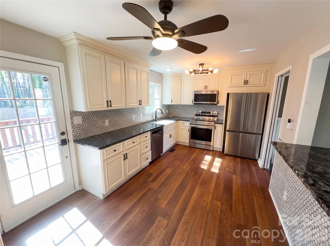 Welcome to 7700 Meadowdale Ln, a home that exudes elegance and comfort. The kitchen is a chef's dream with all stainless steel appliances and an accent backsplash that adds a touch of sophistication. The primary bathroom is a haven of relaxation with double sinks, ensuring ample space for your morning routine. Step outside to a spacious deck, ideal for entertaining or simply enjoying a quiet moment. The fenced-in backyard ensures a space for outdoor activities. This property is a perfect blend of style and functionality, making it a must-see. Included 100-Day Home Warranty with buyer activation.