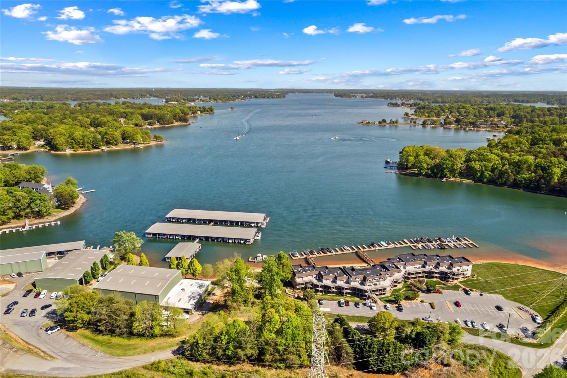 The Lake Norman waterfront penthouse with DEEDED BOATSLIP you've been waiting for has arrived! This stunning, top-floor unit, recently gutted and completely remodeled offers breathtaking, long-range main-channel water views all within a private, GATED community. The kitchen is a chef's dream, showcasing fresh, modern updates and custom cabinets extending to the ceiling for exceptional storage. Features include a dedicated pantry with roll-out shelves, newer SS appliances, granite countertops with a tile back-splash complete with a pull-up eating bar. Natural light fills the area, streaming in from large skylights in the kitchen, great room and bathroom area. Retreat to the primary suite, which boasts a walk-in closet and a luxury ensuite bath, fully updated with a step-in tiled shower and a sleek granite vanity. Luxury updates extend throughout, including tile and Luxury Vinyl Plank, all new light fixtures/ceiling fans, and professional interior design work. Enjoy stunning lake views from the living room, bedroom, or the newly surfaced deck?perfect for relaxing and taking in the views after a day out on the lake. Enjoy outdoor gatherings with neighbors and friends on the newly resurfaced front deck where the oversized commercial grade umbrella will convey for evening cocktails and BBQs. The included deeded boat slip (#34) with an attached Hydrohoist lift to convey with the property. Enjoy resort-style living with community access to the pool, sauna, fitness room and clubhouse. This fantastic location is next to a marina and convenient to many new shops and restaurants at the intersection of Hwy 150 & Slanting Bridge Rd. Welcome home!